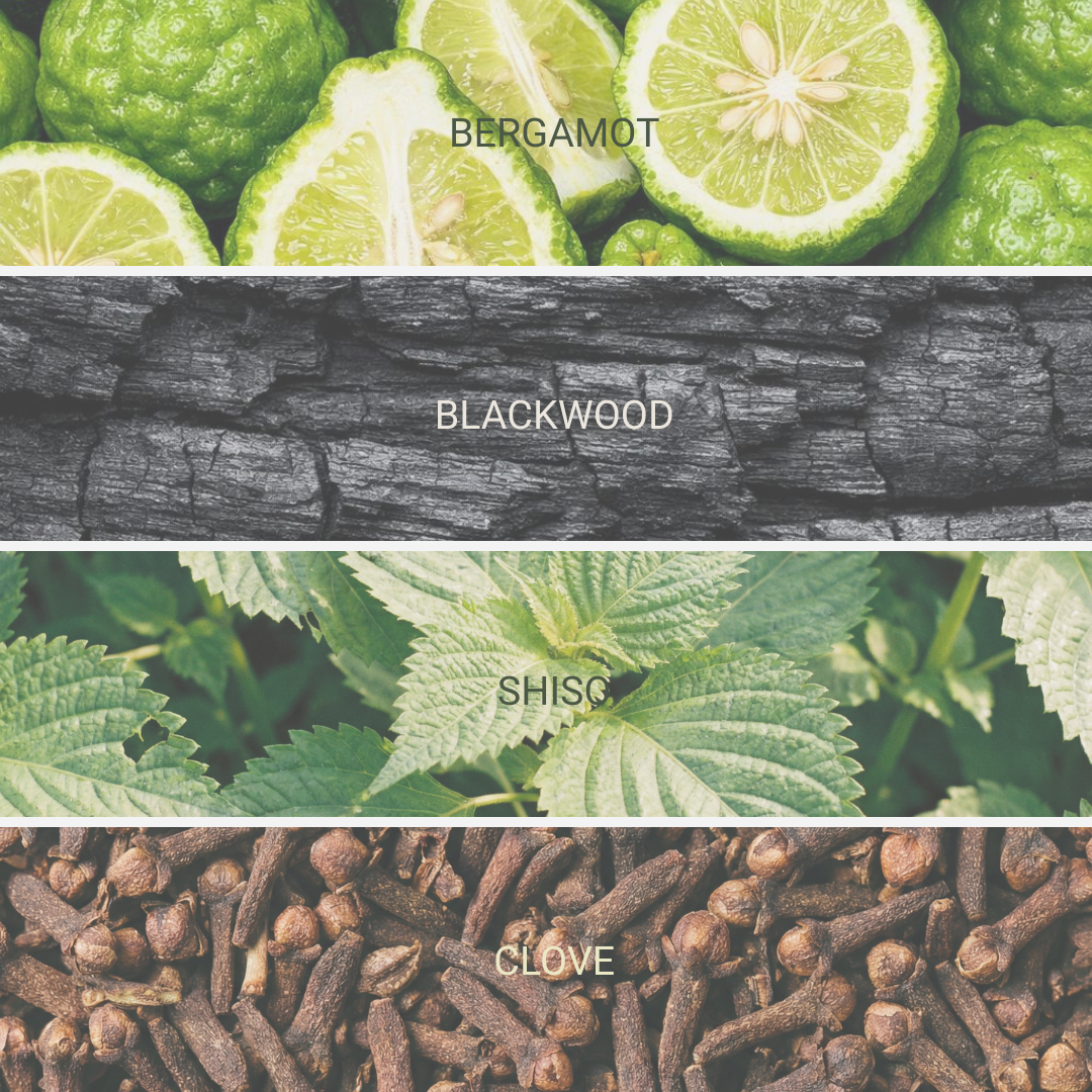 blackwood. bergamot. shiso leaf. clove