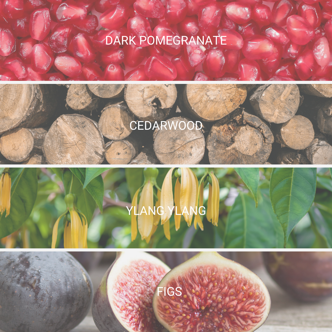 cedarwood. ylang ylang. figs. dark pomegranate.